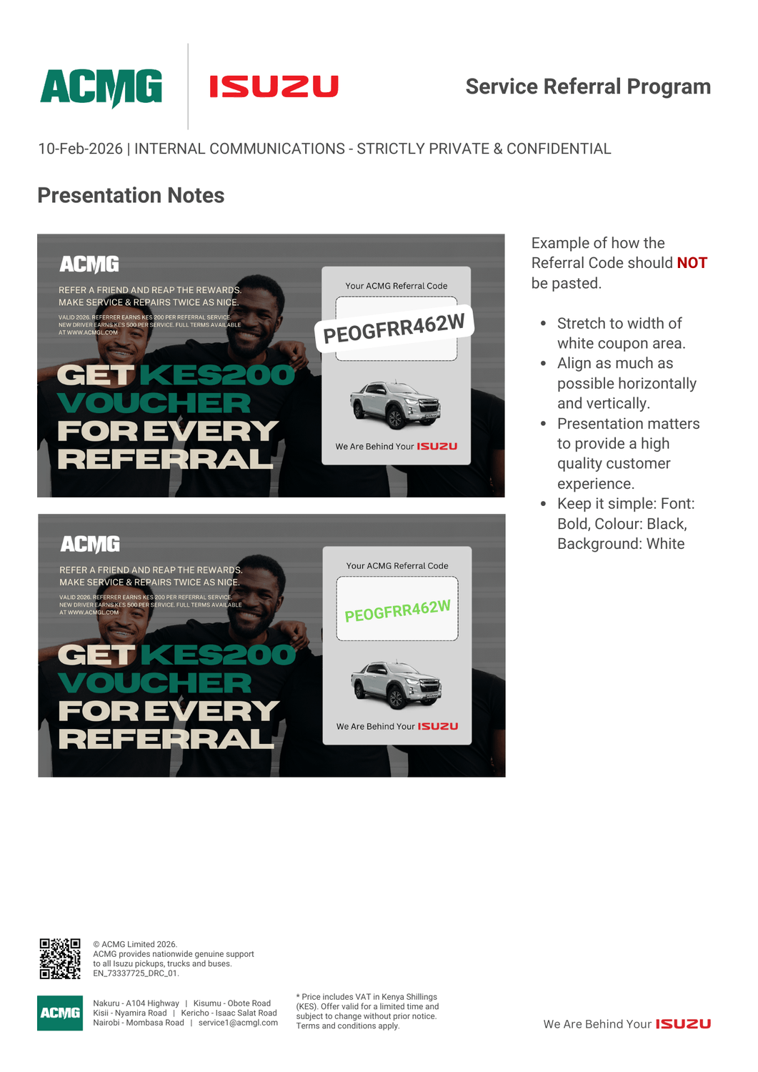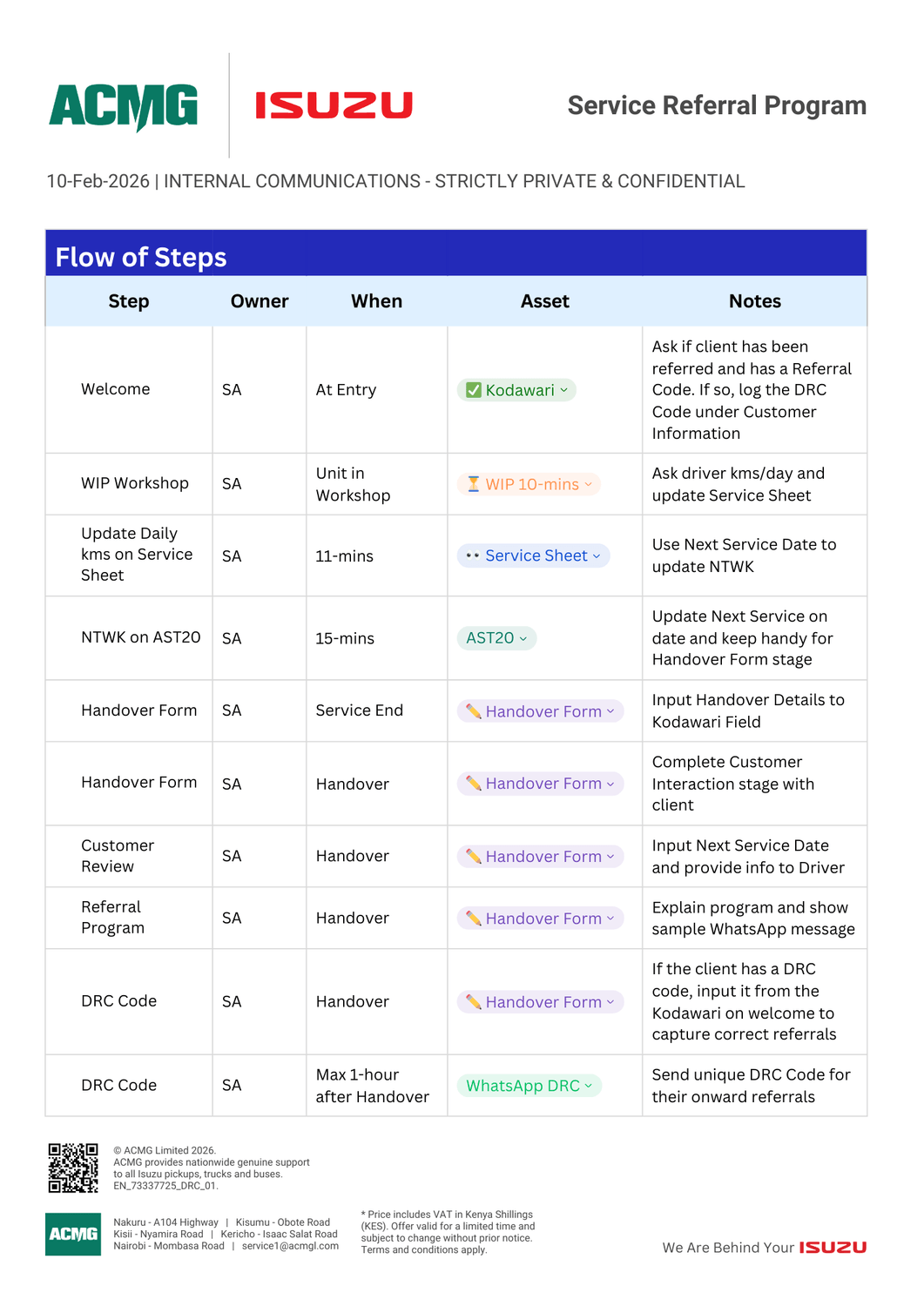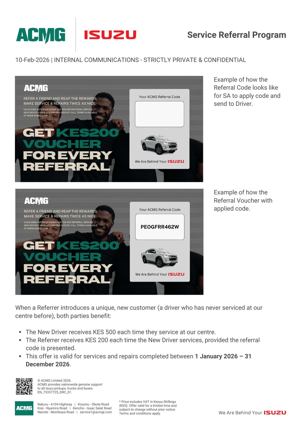 A referring driver (“Referrer”) receives KES 500 for each unit they personally bring for service.